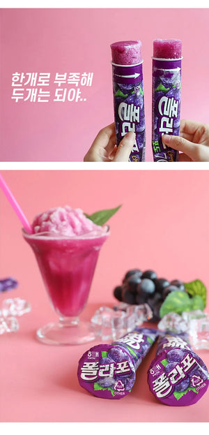 Grandes trozos de hielo con sabor a uva realzan el sabor refrescante y fresco.